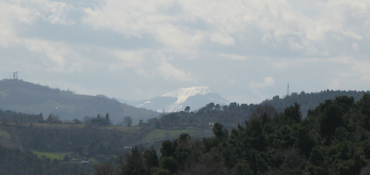 Alla mattina presto, quando il cielo è limpido, il Monte Catria si vede proprio bene, imponente e… innevato.